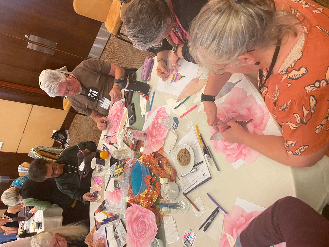 But creating space for shared joy itself should not be overlooked, especially in these challenging days. At our (then CF&I) annual conference in 2023, I led the group through a shared art project. With cut-out feathers, art supplies, glitter and gems in front of us, we took some time to think about the following questions: